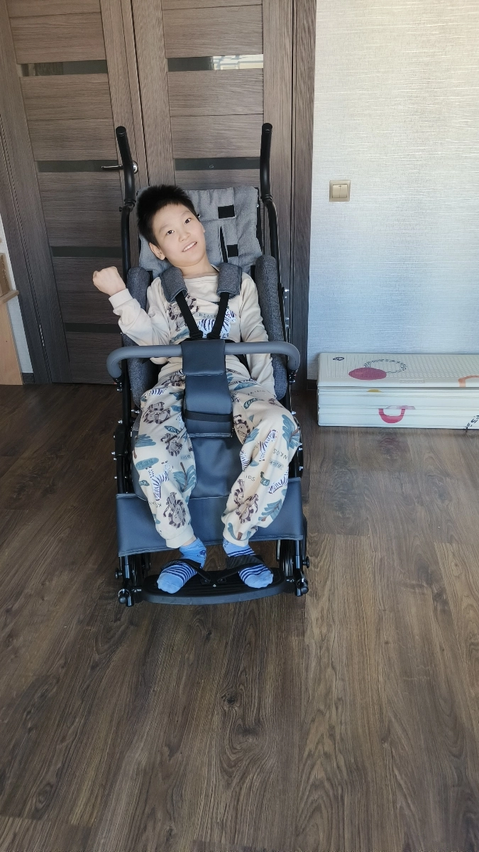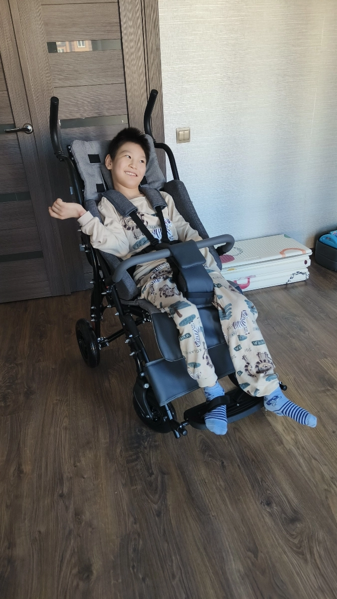 Супер коляска, на сумму которую одобрили (соц. сертификат) + немного доплата вообще очень хорошая коляска, нам по всем параметрам подошла. Искала очень тщательно. Для меня важно было, чтобы по дому ездила, а учитывая, что ребенок уже не маленький, эта подошла идеально, другие варианты были большие и тяжелые. Эта относительно не тяжелая (20 кг.), не широкая и не длинная, учитывая что она на рост до 160 см. Рост сына 134 см. 15 лет, спинка на самом низком стоит, можно еще поднять. Для худеньких в самый раз, но можно снять боковые опоры. Опору для головы не надела, а так он есть в комплекте. Через дверной проем проходит спокойно. Самое главное — легкое управление, с предыдущей коляской замучались, только муж может толкать, а этот классный, одной рукой толкаю.