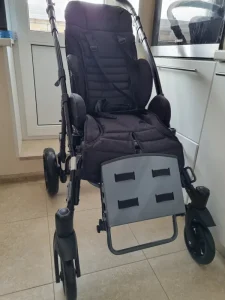 Отличная коляска, выглядит как обычная, а это не мало важно. Ребёнок удобно сидит, управление тоже отличное.